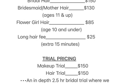 If you or anyone in your bridal party has naturally curly/textured hair, and do not want to use natural curls, please arrive with hair relaxed/blown out.